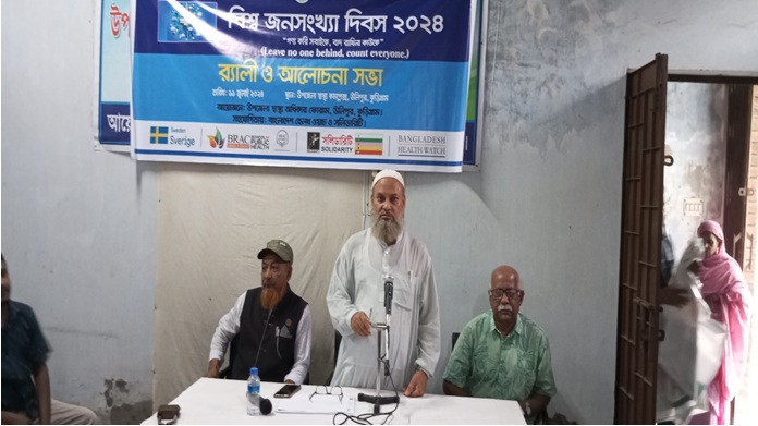 আরো বক্তব্য রাখেন, বীর মুক্তিযোদ্ধা, নুরমোহাম্মদ সরকার, সভাপতি উপজেলা স্বাস্থ্য অধিকার ফোরাম উলিপুর। তিনি তার বক্তব্যে বলেন, সলিডারিটি ও বাংলাদেশ হেলথ ওয়াচ ২০২১ সাল থেকে কুড়িগ্রাম সদর হাসপাতাল ও উলিপুর উপজেলা হাসপাতাল এবং হাতিয়া ইউনিয়নের সকল কমিউনিটি ক্লিনিকে স্বাস্থ্য সেবার মান উন্নয়ন নিয়ে কাজ করে যাচ্ছ্।ে তারই ধারা বাহিকতায় আজ বিশ^ জন সংখ্যা দিনস ও আলোচনা সভার আয়োজন করা হয়েছে। আমরা সকলে মিলে একসাথে কাজ করলে অবশ্যই বাংলাদেশে জন সংখ্যা বৃদ্ধি রোধ করা সম্ভব।