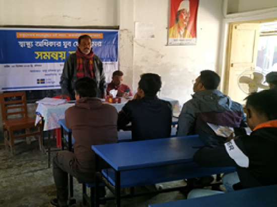সভার উদ্দেশ্য: স্বাস্থ্যসেবার মনোন্নয়নের লক্ষ্যে উপজেলা পর্যায়ের স্বাস্থ্য অধিকার ফোরাম সদস্যদের মধ্যে সমন্বয় বৃদ্ধি করা। সদস্যদের মধ্যে পারস্পরিক তথ্য শেয়ার করা। স্বাস্থ্য অধিকার ফোরামের গৃহীত পদক্ষেপসমূহ সঠিক বাস্তবায়নের পর্যালোচনা করা এবং ভবিষ্যত করণীয় বিষয়ে লক্ষ্য নির্ধারন করা।